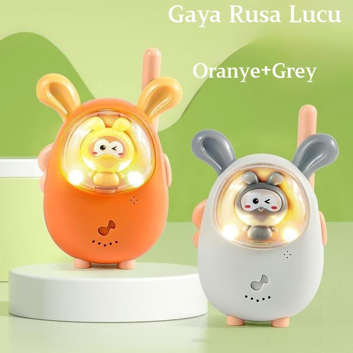 Walkie Talkie Nirkabel Anak Jarak Jauh 500 Meter Edukasi Mainan Telepon 2pcs Hadiah Anak-anak - Gray+Orange 2pcs(dengan