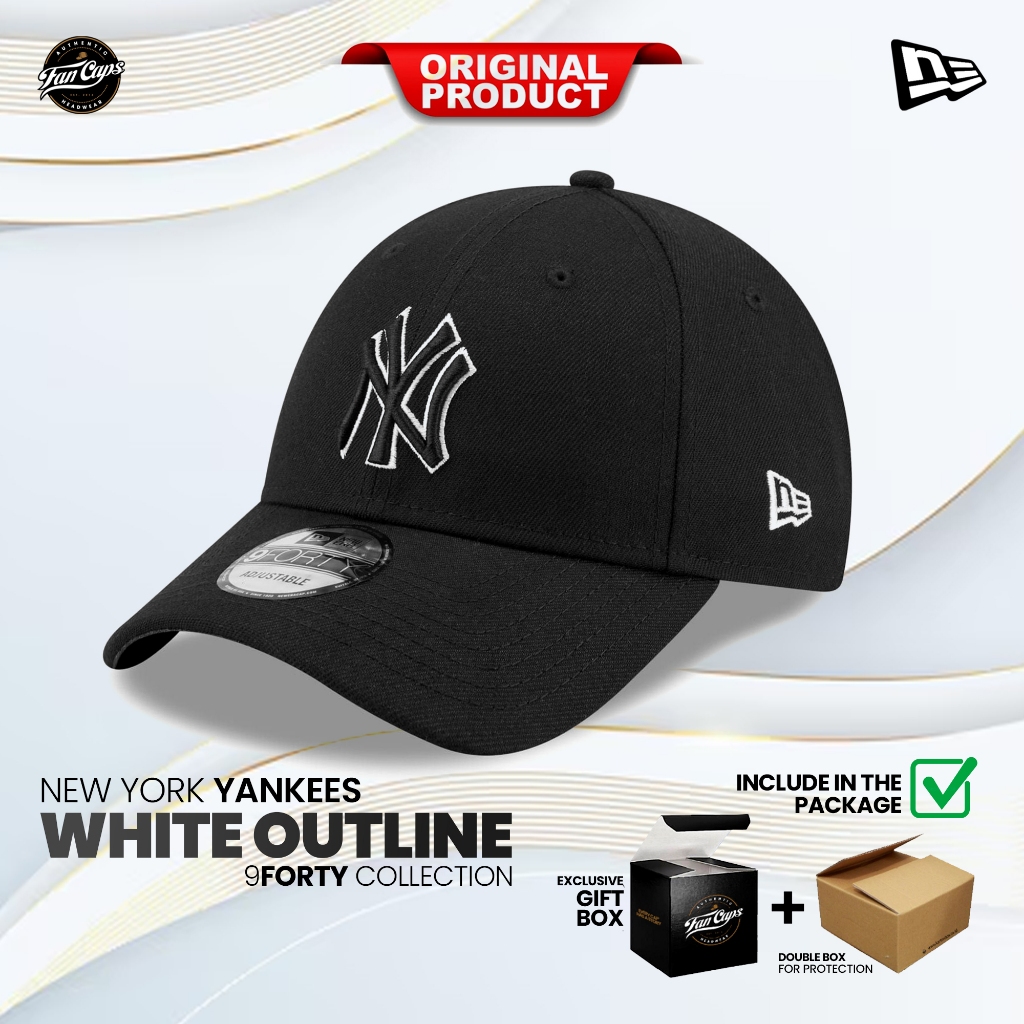 Topi New Era Original MLB New York Yankees 9FORTY warna hitam Logo kombinasi hitam stroke putih | FREE GIFT BOX