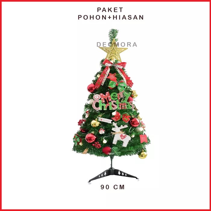 HIASAN NATAL MURAH! Pohon Natal PVC Christmas Tree 90 cm Paket Pohon Natal Hiasan Natal Lampu