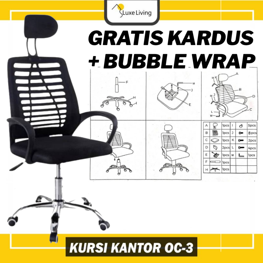 LLI Kursi Kantor Kursi Kerja Kursi Belajar Ergonomis Putar Hidrolik Kursi Boss Staff Jaring Murah