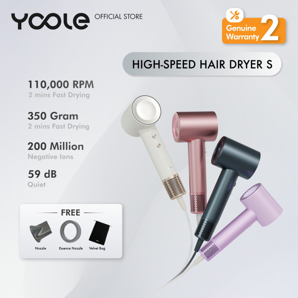[YOOLE] High Speed Hair Dryer S/teknologi ion negatif/Kontrol suhu cerdas/Cepat kering