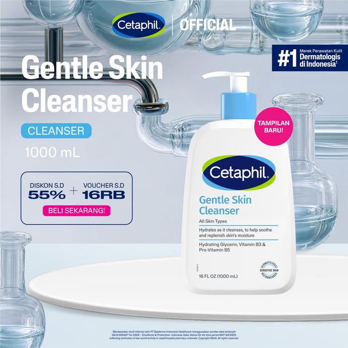 CETAPHIL GENTLE SKIN CLEANSER 1000ML DENGAN NIACINAMIDE, GLYCERIN DAN PANTHENOL SABUN PEMBERSIH MUKA UNTUK SEGALA JENIS