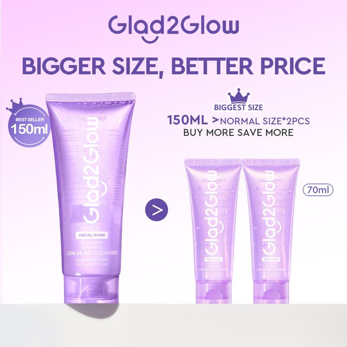 【JUMBO 150ML】GLAD2GLOW BLUEBERRY CERAMIDE LOW PH CLEANSER 150ML-FACIAL WASH GENTLE SKINCARE FACE WASH SABUN CUCI MUKA ME