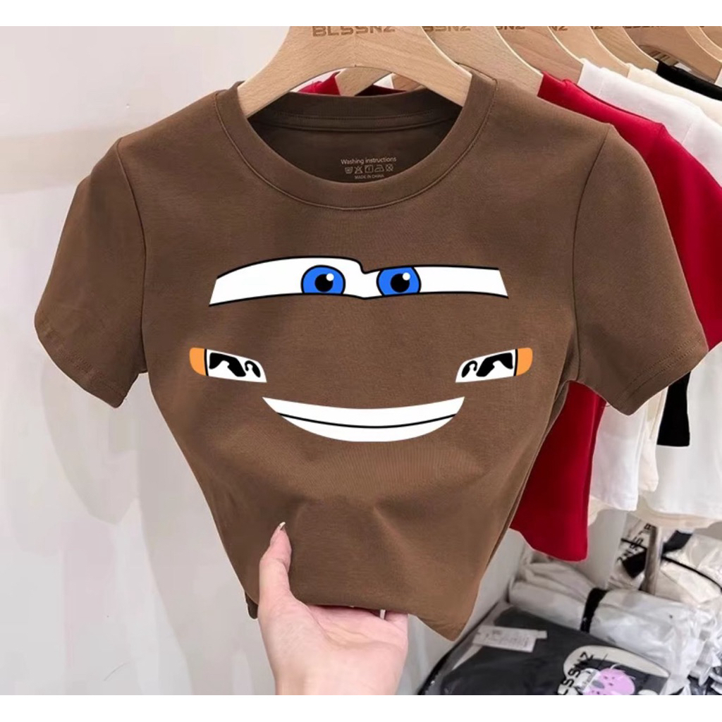 SM COLLECTIONN ATASAN WANITA KAOS CROP TOP MC MOBIL KNIT WEAR FULL PRINT