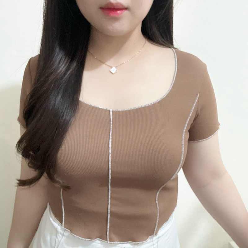 Heejin Rib Longshort | Atasan Crop LIst Rib Wanita