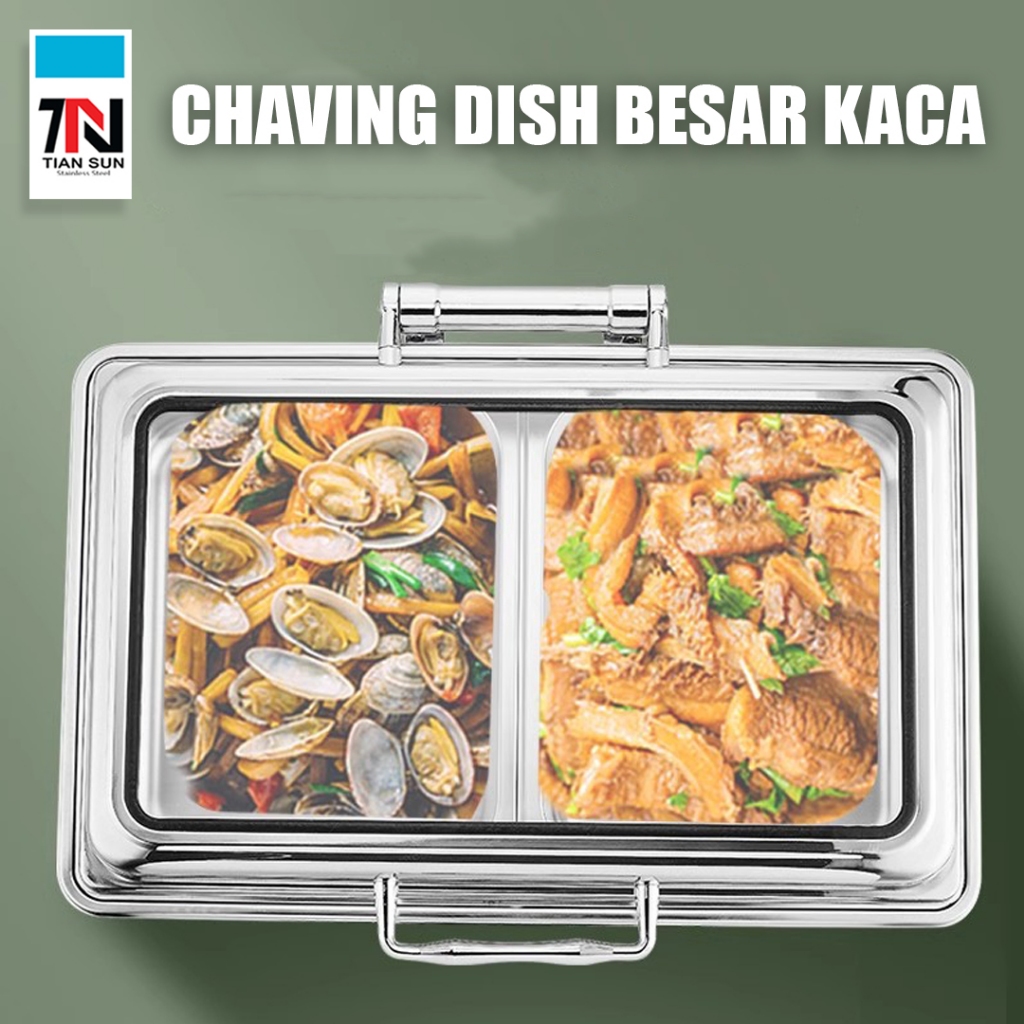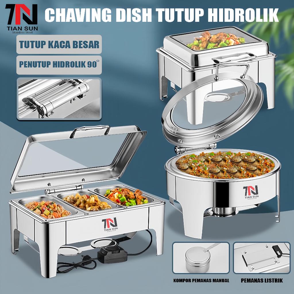 Tian Sun Chaving Dish Kaca Besar dan Penutup Hidrolik 90° / Rolltop Stainless Prasmanan 9L/13L & 6L