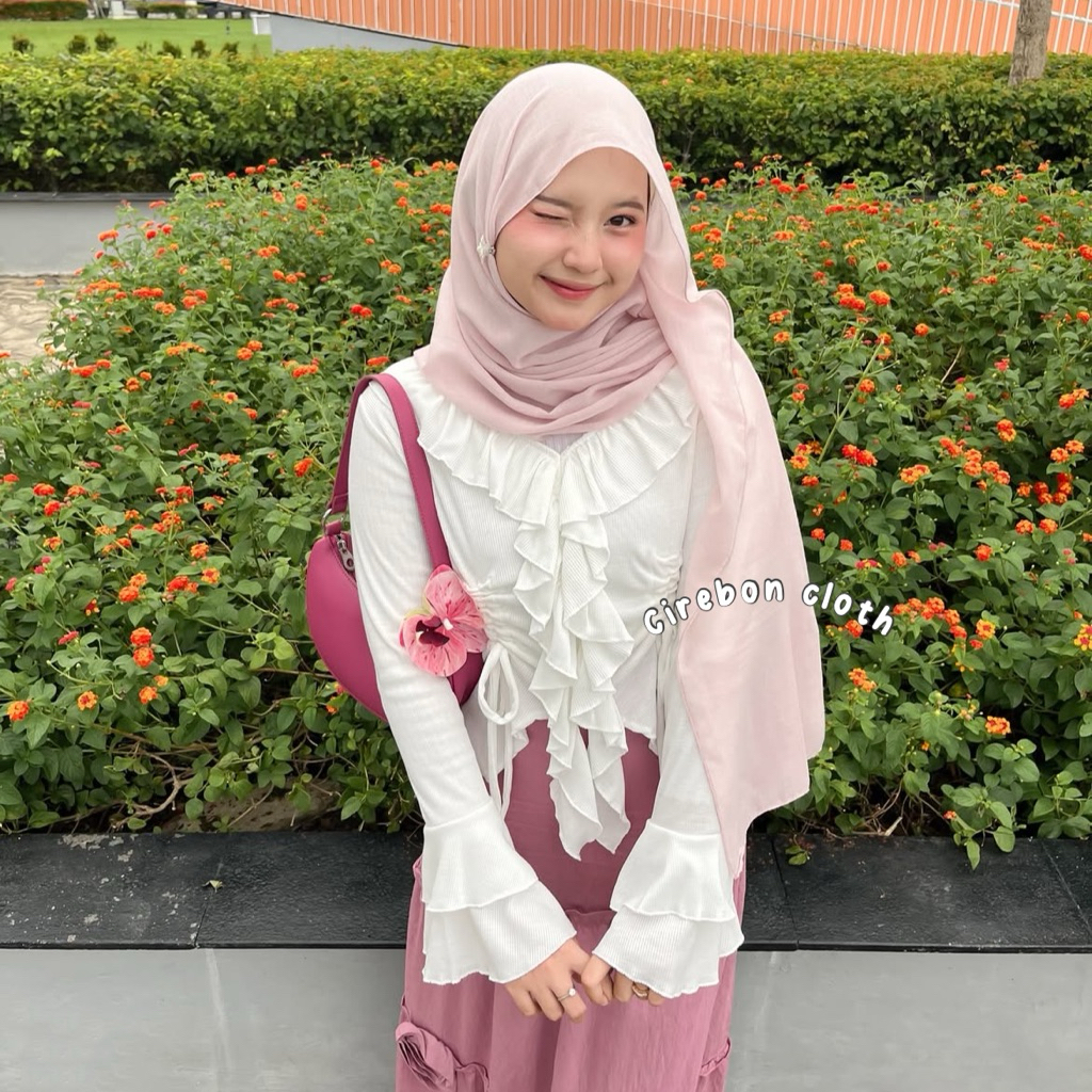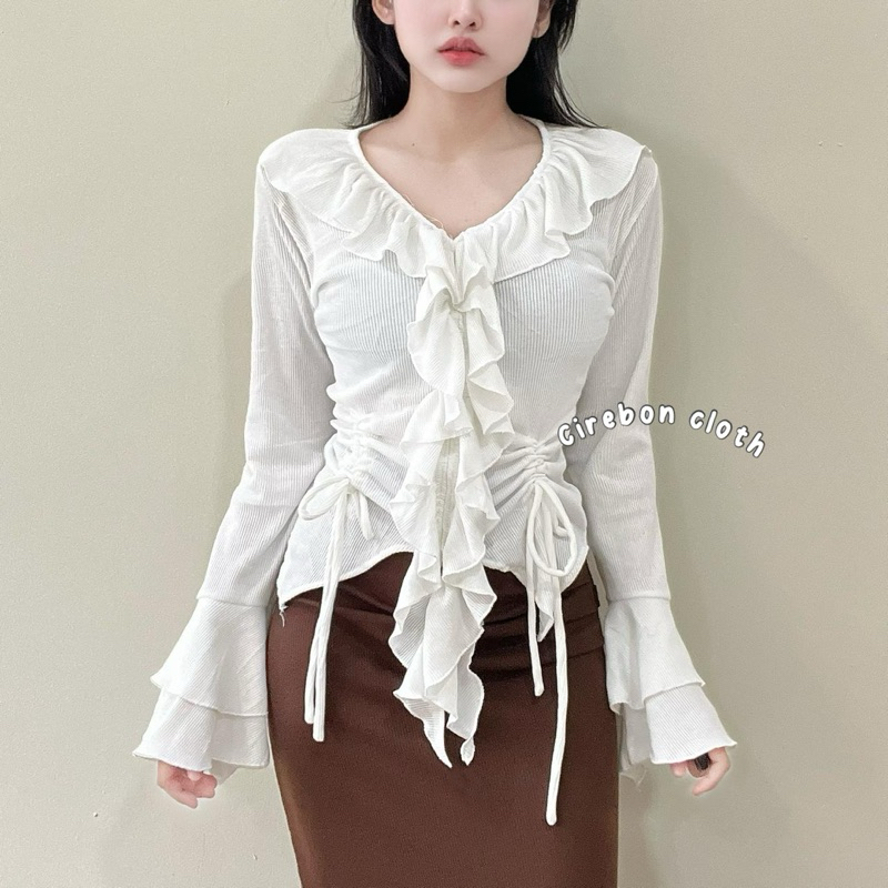 KIYANA Cirebon Cloth Eleanor Ruffle Blouse / Korean Blouse / Blouse Aesthetic / Blouse Ruffle Wanita Murah Gratis Ongkir