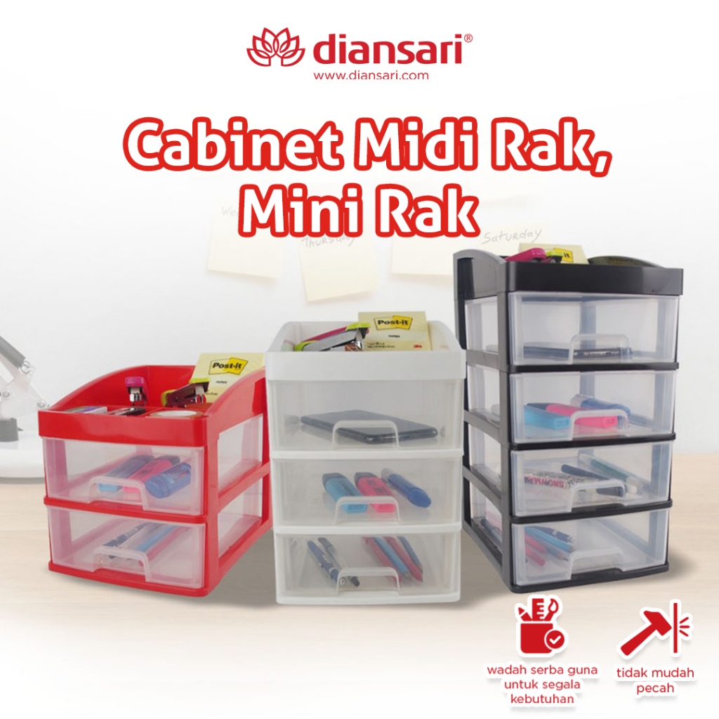 DIANSARI Cabinet MINI Rak S/S 3/ Rack Kosmetik Stationery 3 Susun Mini/Laci Plastik Mini 3 Susun/ Rak Serbaguna Mini