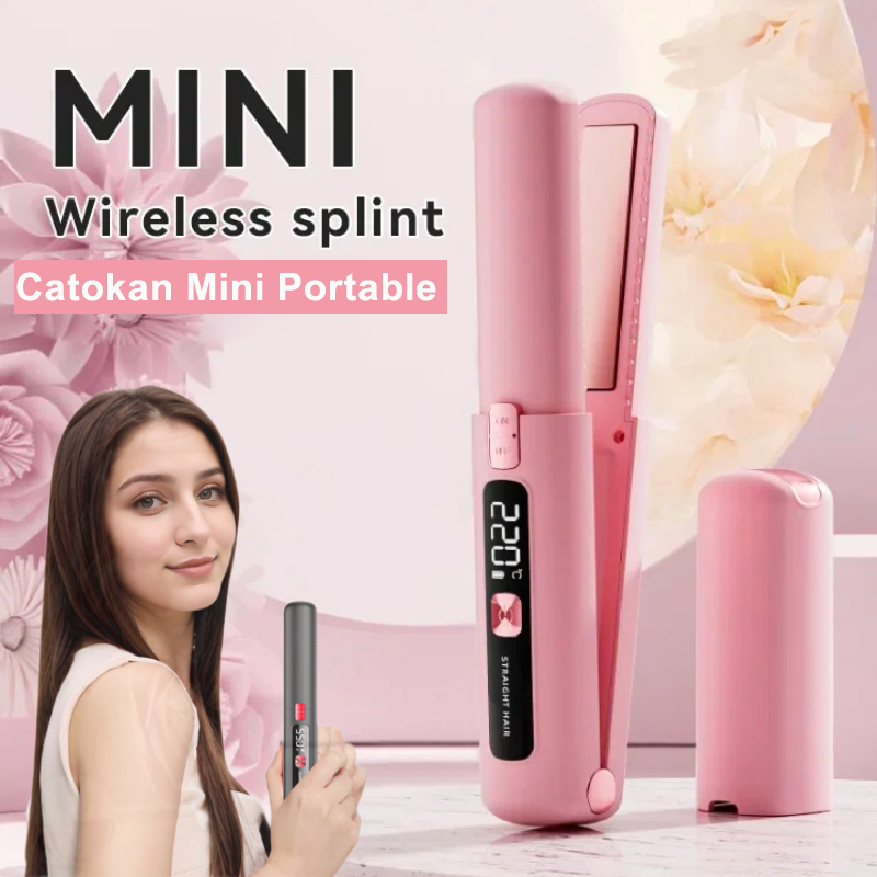 Best Seller Catokan Keramik Mini Wireless Portable 2IN1 Pelurus dan Keriting Rambut Professional