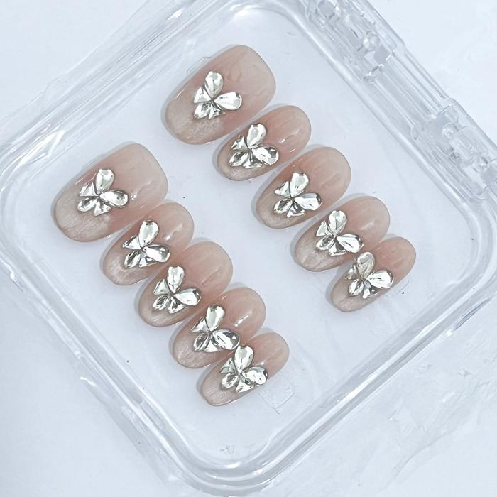 CN 80 CHRISTY NAILS KUKU PALSU 3D | SHORT NAIL ART DENGAN DAYMEN PRESS ON NAILS DESAIN KOREA UNTUK PERNIKAHAN TAMPILAN H