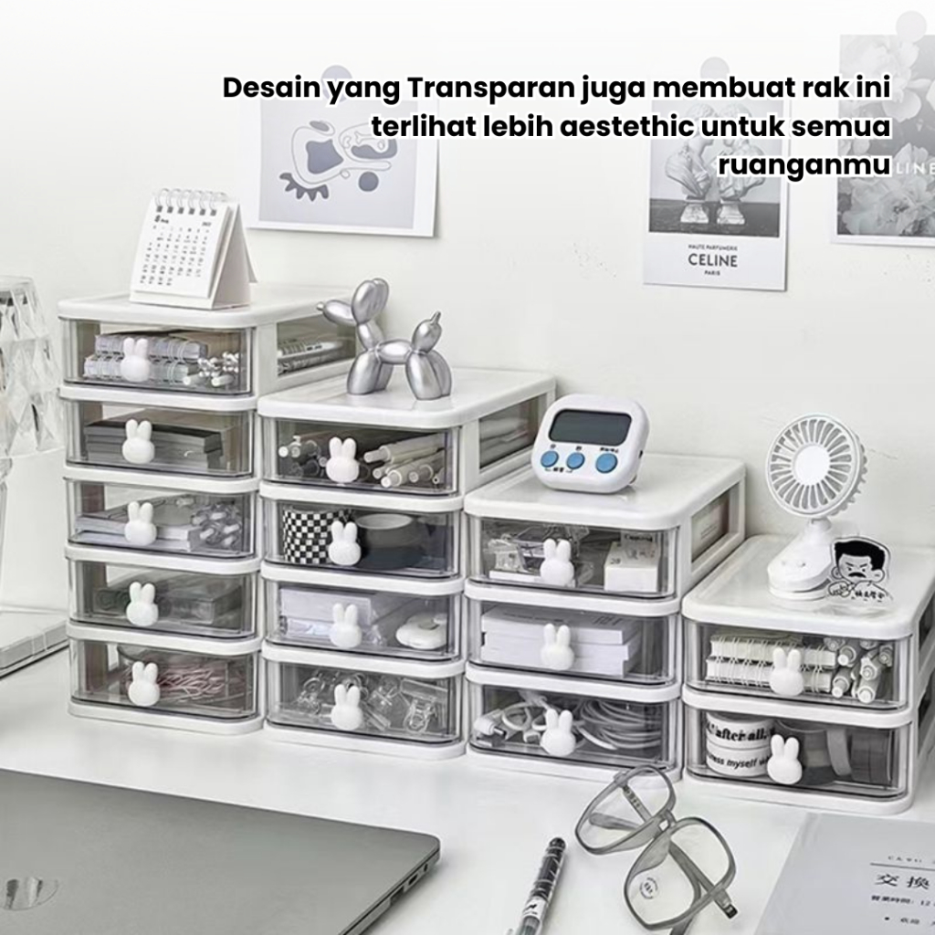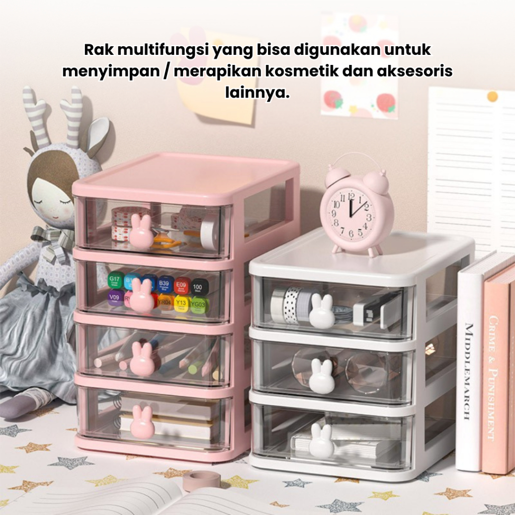 CATALIS Rak Kosmetik Serbaguna / kotak laci mini organizer meja karakter bunny / Rak Susun Plastik