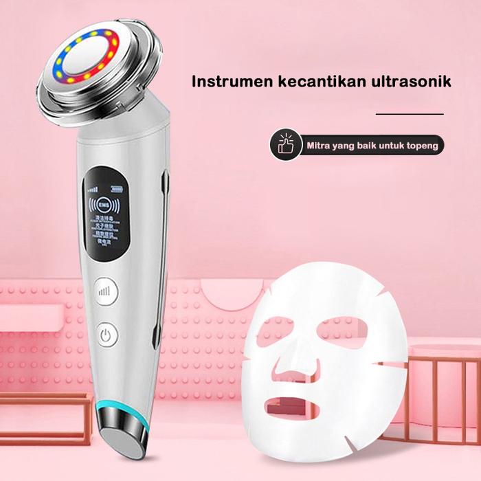 MULTIFUNCTIONAL ALAT SETRIKA WAJAH 5 IN 1 PEMIJAT PERAWATAN LED KULIT ANTI ANGING FACIAL MASSAGE BEAUTY MACHINE - PINK