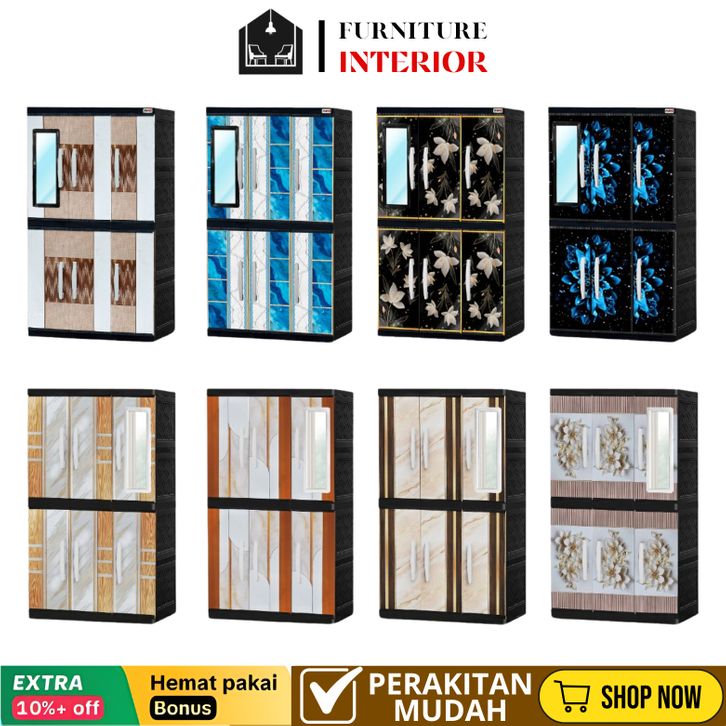 lemari plastik lemari pakaian 3 pintu jumbo motif printing mirip vip akako gantung + kaca / lemari pakaian plastik 2p