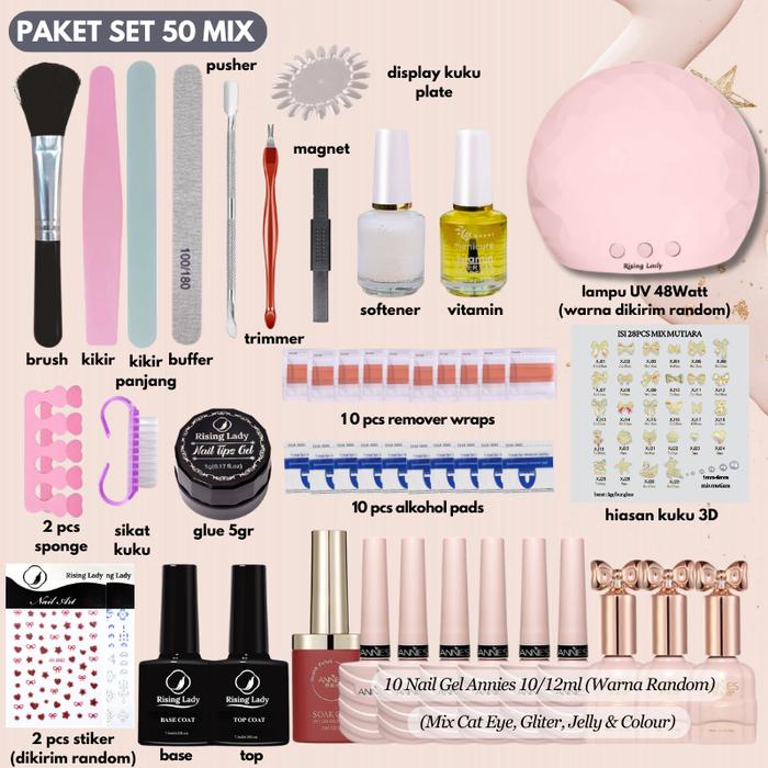 SET NAIL ART LENGKAP 47IN1/50IN1/59IN1/72IN1 SET KUTEK GEL NAIL POLISH UV/UNTUK NAIL ART PEMULA - SET 47IN1-03