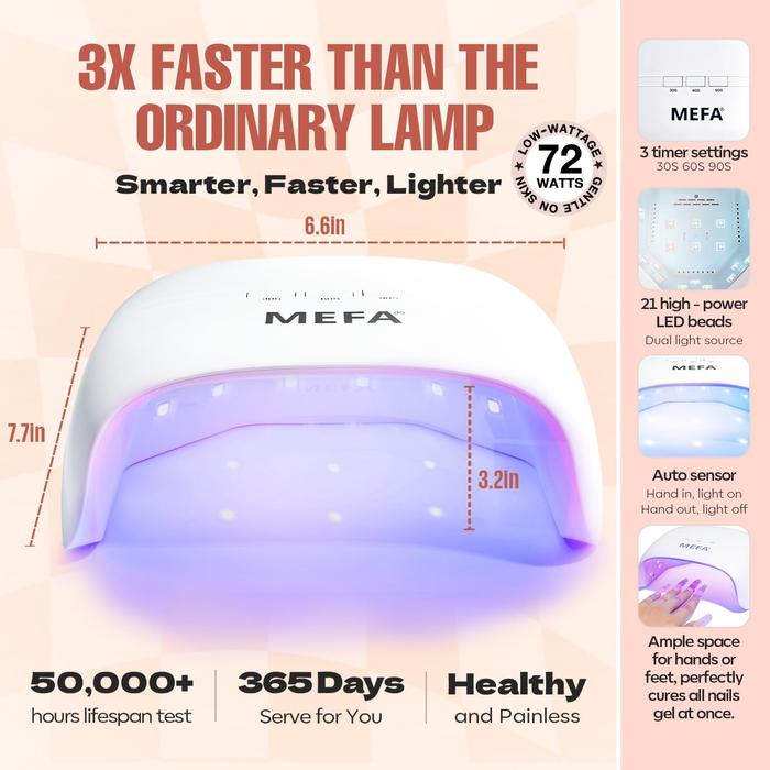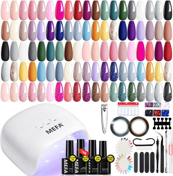 【HIGHLY RECOMMENDED】MEFA NAIL ART SET 32 WARNA LENGKAP GEL NAIL POLISH KIT DENGAN UV LIGHT DENGAN BASE AND MATTE/GLOSSY