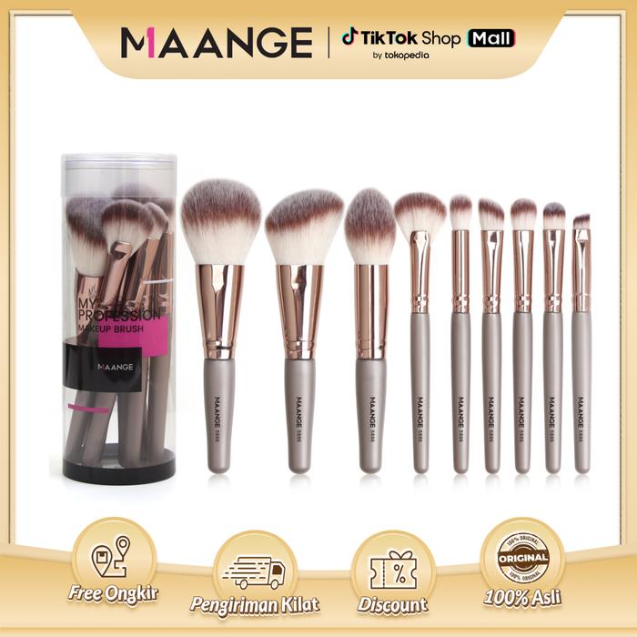 MAANGE 9 PCS MAKEUP BRUSH SET LEMBUT ALAT KECANTIKAN MAG5886 KUAS RIAS MERAH EYEBROW - CHAMPAGNE