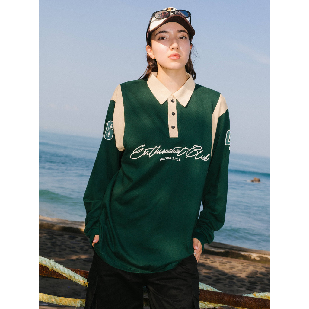 OOTDSUPPLY Longsleeve Polo Rugby Regular Infinite 96 Green Mocca l Shirt Lengan Panjang l Kaos Kerah I Kaos Salur LSRB00