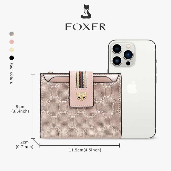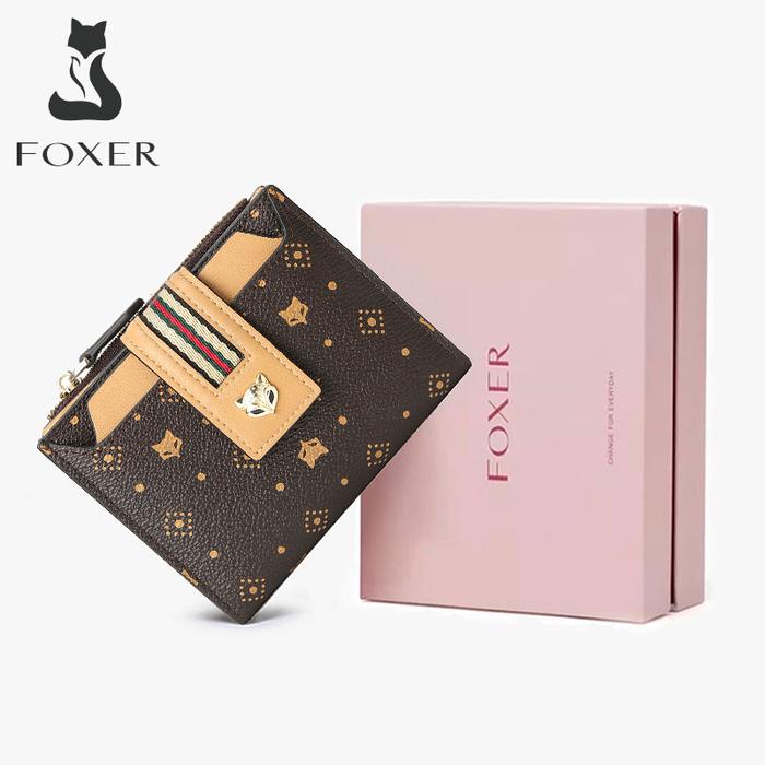 FOXER Dompet Wanita Dompet Pendek Motif Mode Tempat Kartu Kredit Dompet Koin Tempat Tiket Wanita Kulit Uang - Khaki