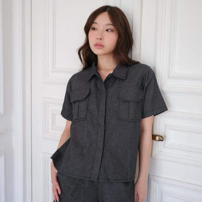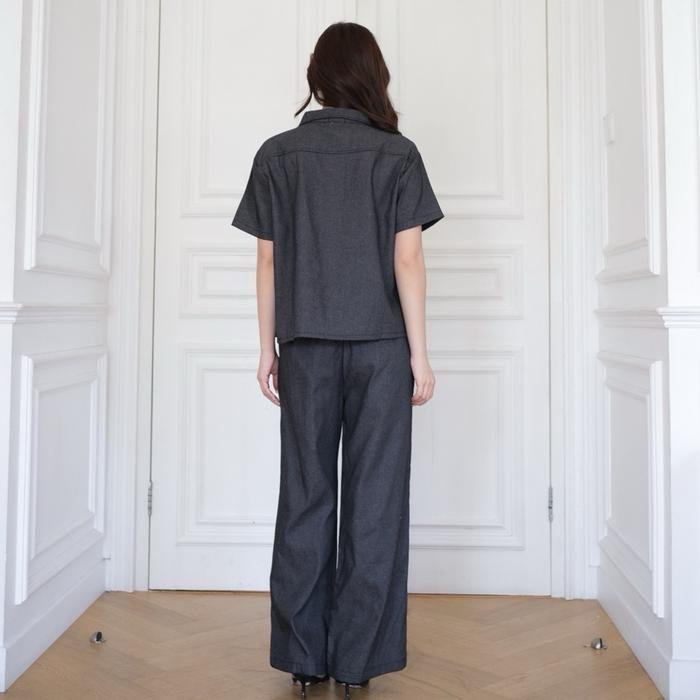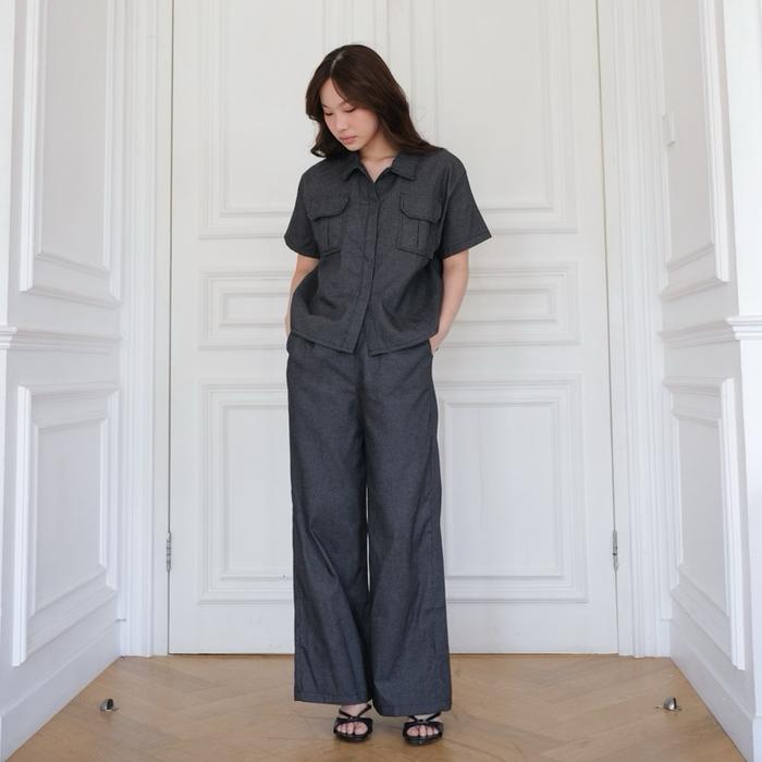RARENOA - GEMMA DENIM ONE SET - SETELAN KATUN DENIM CELANA PANJANG - KEMEJA SET WANITA KANCING CASUAL NYAMAN - STONE GRE