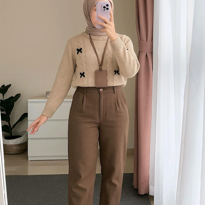 VIENETTA.ID - ONESET SETELAN WANITA CABLE RAJUT KOREAN STYLE MIX KULOT OUTFIT WANITA CEWEK REMAJA BAJU ATASAN PITA COQUE