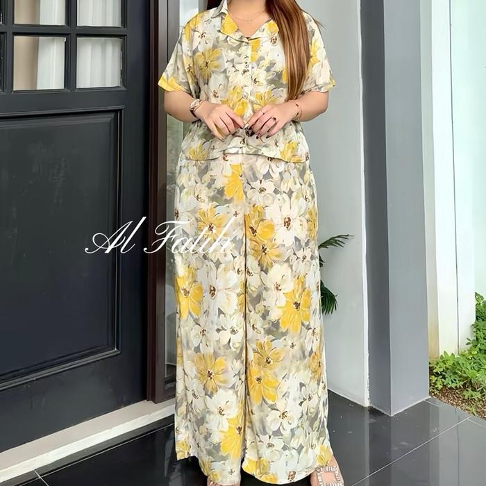 ONE SET CROP SETELAN CELANA KULOT WANITA HIGHTWAIST RAYON PREMIUM BUSUI FRIENDLY KANCING - K 2