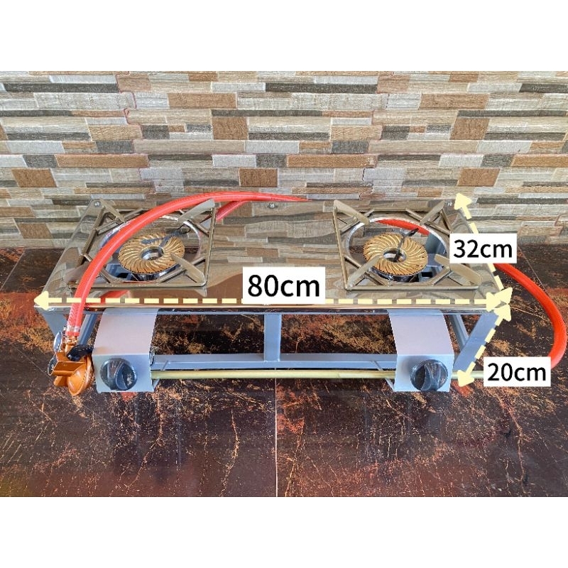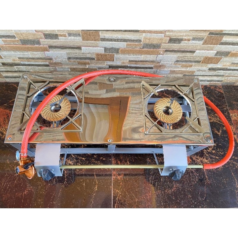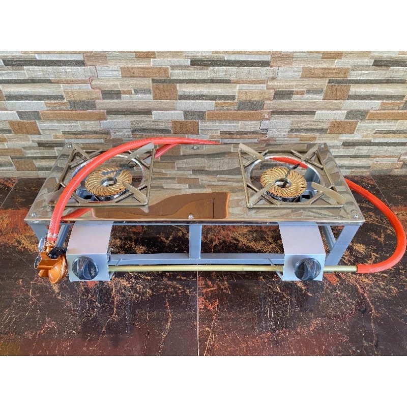Kompor Gas Rakitan Api Besar 2 Tungku Kuningan Stainless