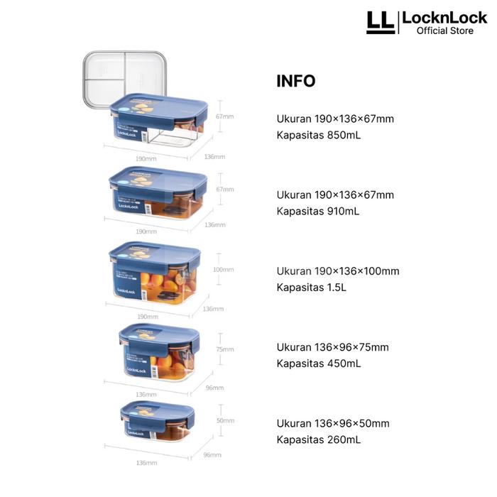 LocknLock Bisfree Modular Plus Rectangular Kotak Makan Tritan - 1.5L NAVY