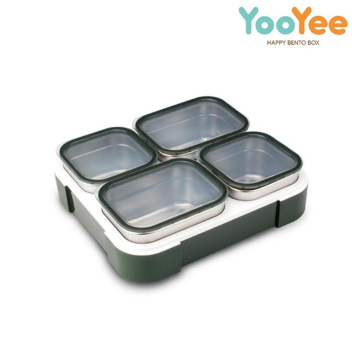 Yooyee Kotak Makan Stainless 4 Sekat Set dengan Tas - Hijau Army