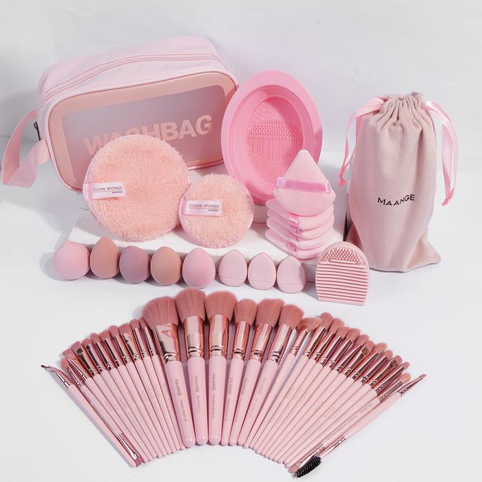 MAANGE COMPLETE PROFESSIONAL MAKEUP TOOLS SET 30 BRUSH WITH POUCH + 5 POWDER PUFF + 5 BEAUTY SPONGE+ 3 DETAIL PUFF + 2 B