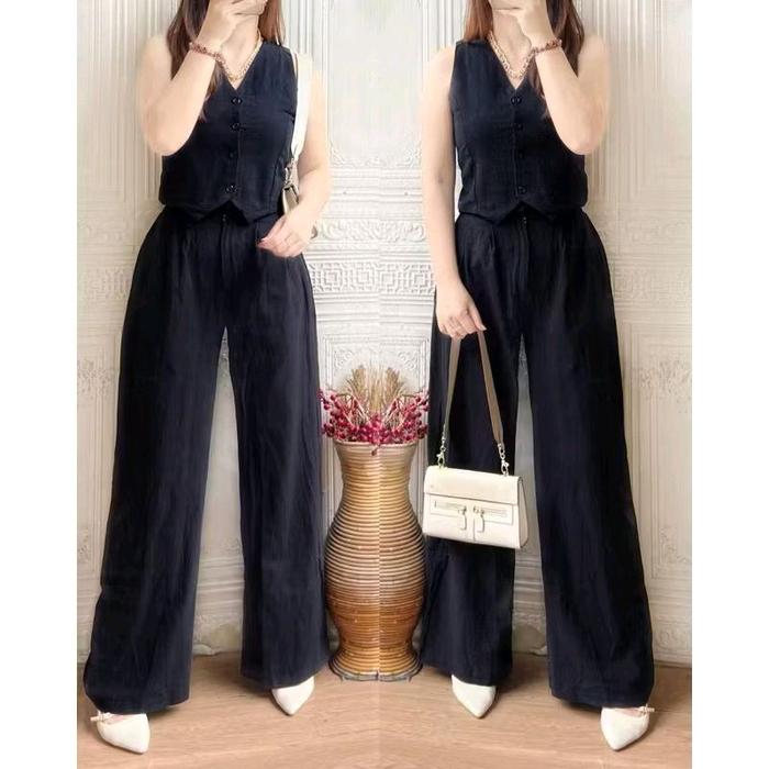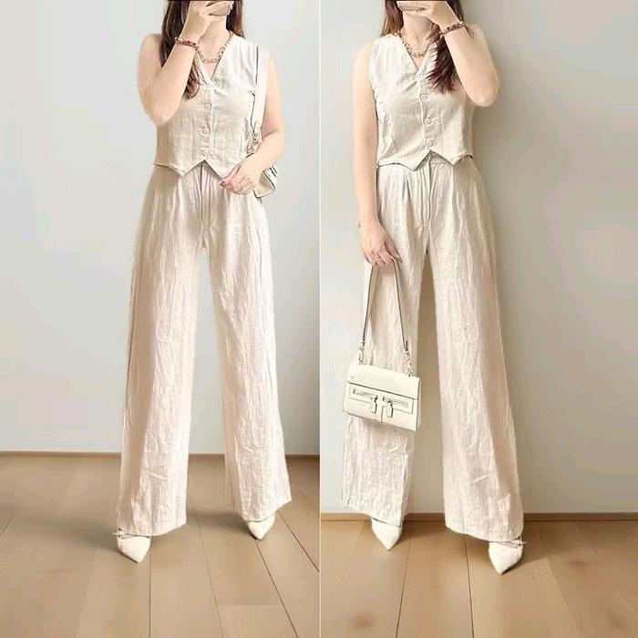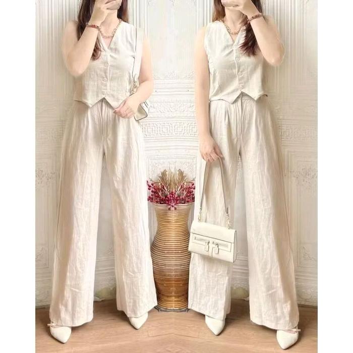 SET WANITA IMPORT (ATASAN+CELANA) LINEN PREMIUM / BAHAN ADEM - MILO, M