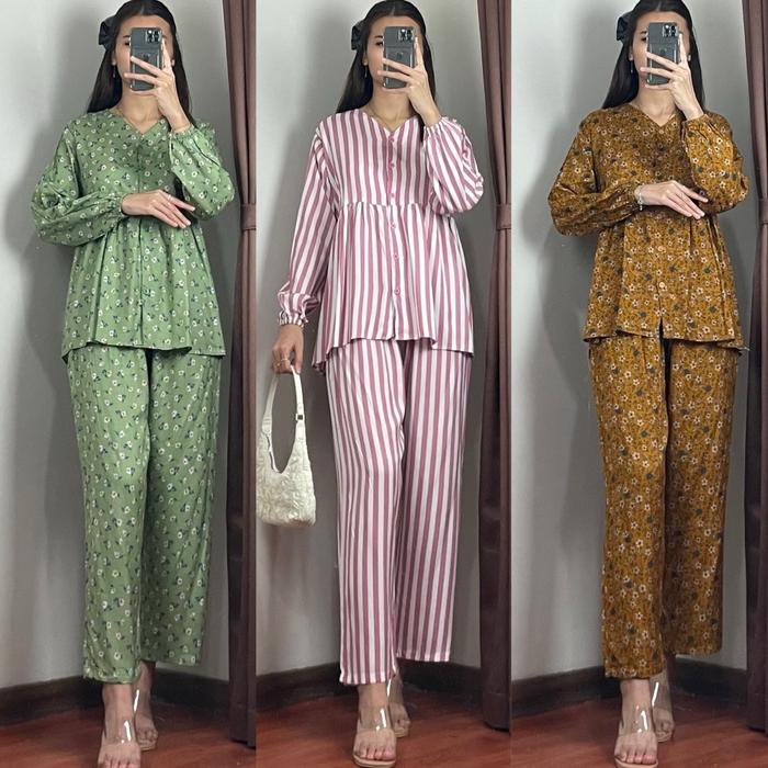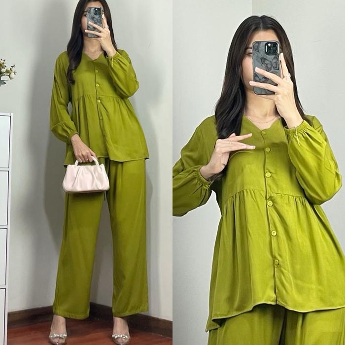 TANIA ONE SET SETELAN WANITA RAYON ADEM BUMIL BUSUI FRIENDLY BY FATHIAN - TANIA LIME