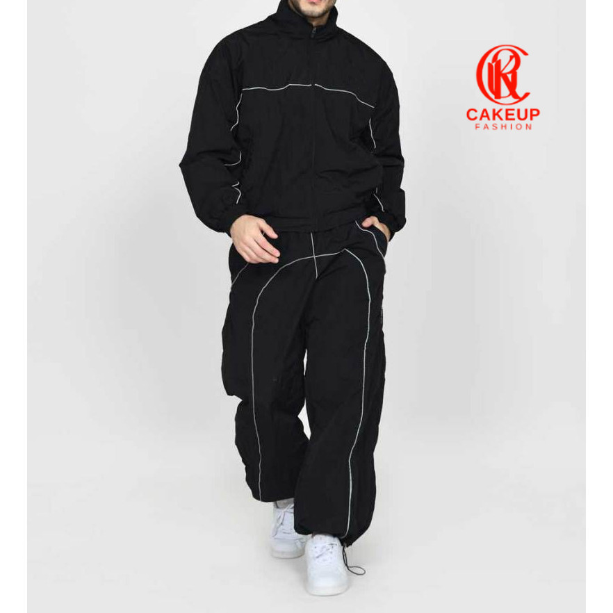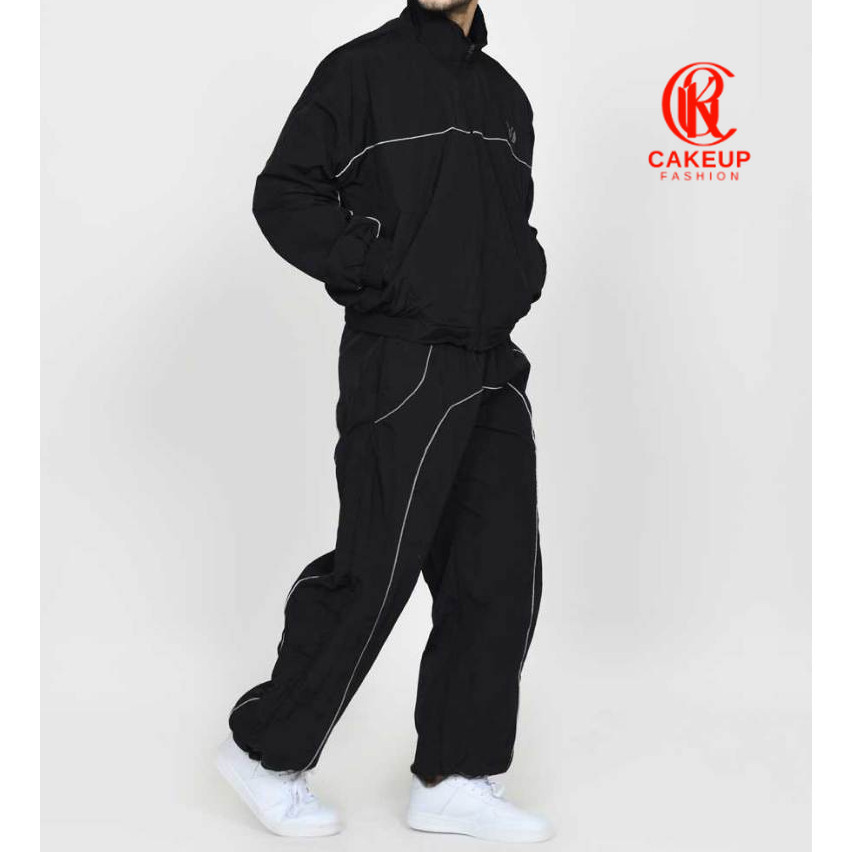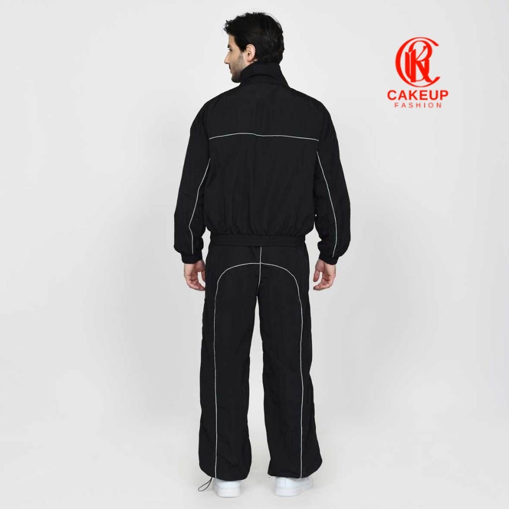 Velzo Jaket Olahraga d Track Pria dan Wanita Bahan Parasut Warna Hitam Nyala di Tempat Gelap
