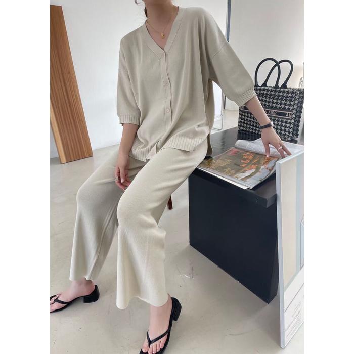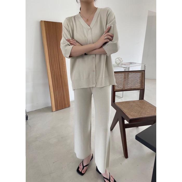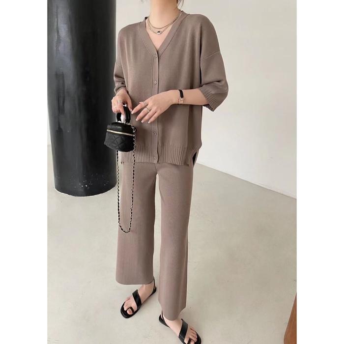 SET6954 SATURDAY KNIT SET OVERSIZE CARDI & PANTS - KHAKI