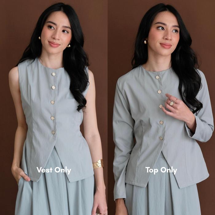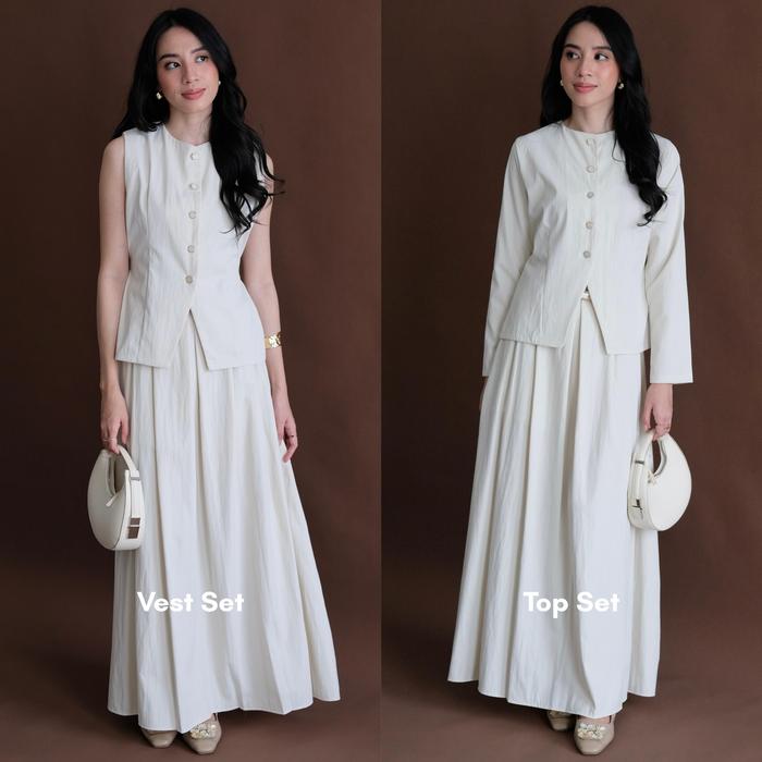 ARLA SET - ATKEY | SETELAN WANITA - ONE SET ROK VEST DAN ATASAN PANJANG KEKINIAN - BONE, T0P ONLY SM
