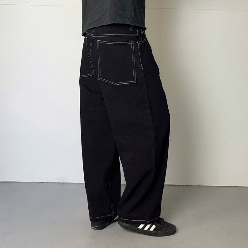 R&R Celana Jeans Baggy Raw Denim Tebal 14 Oz