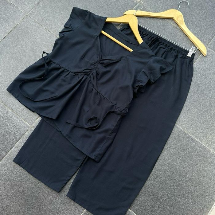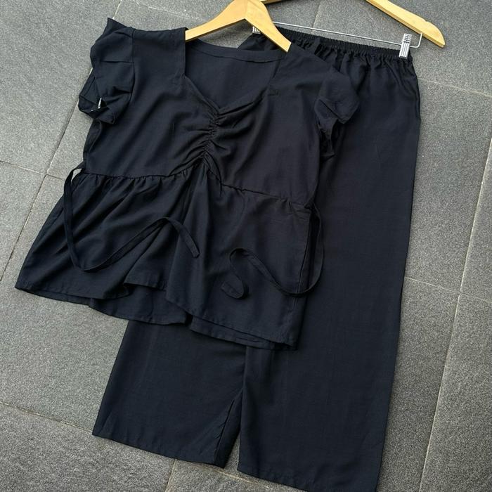 SET WANITA KEKINIAN BAHAN RAYON MODEL DADA KERUT MOTIF POLOS SETELAN BAJU CELANA DEWASA KULOT PANJANG - ARMY POLOS DADA