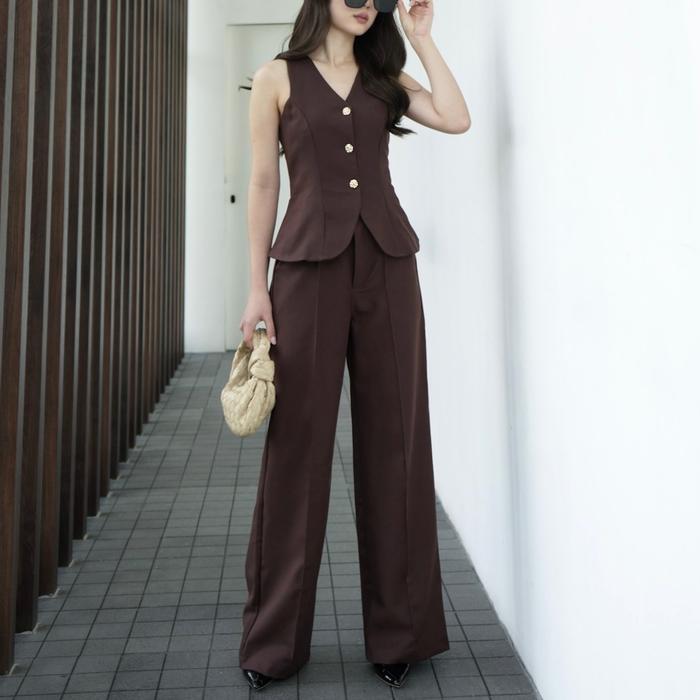 [TAVIA] KYLIE SET / SETELAN WANITA FORMAL / BAJU SETELAN WANITA CASUAL / SETELAN CELANA WANITA - BLACK, S