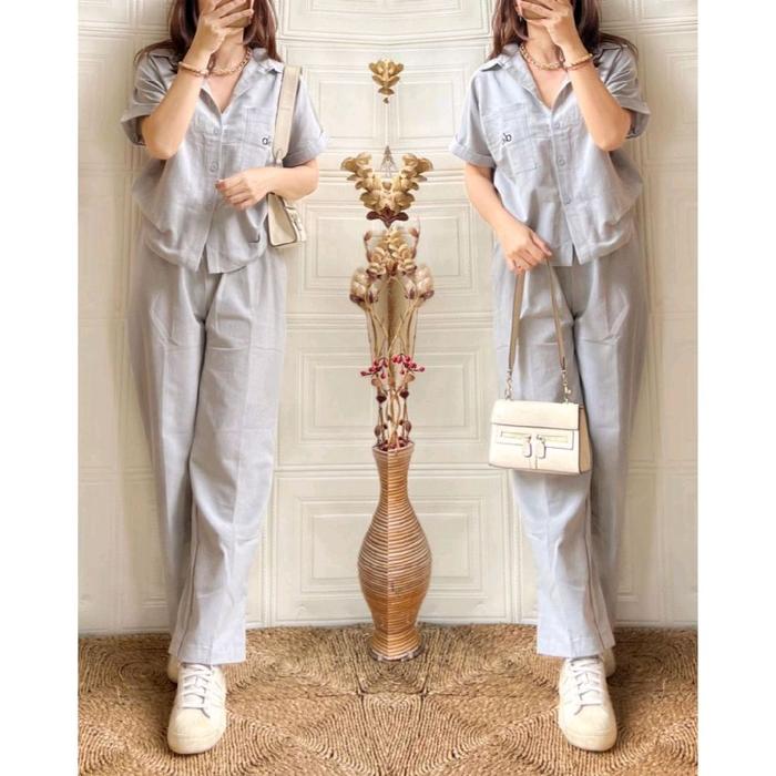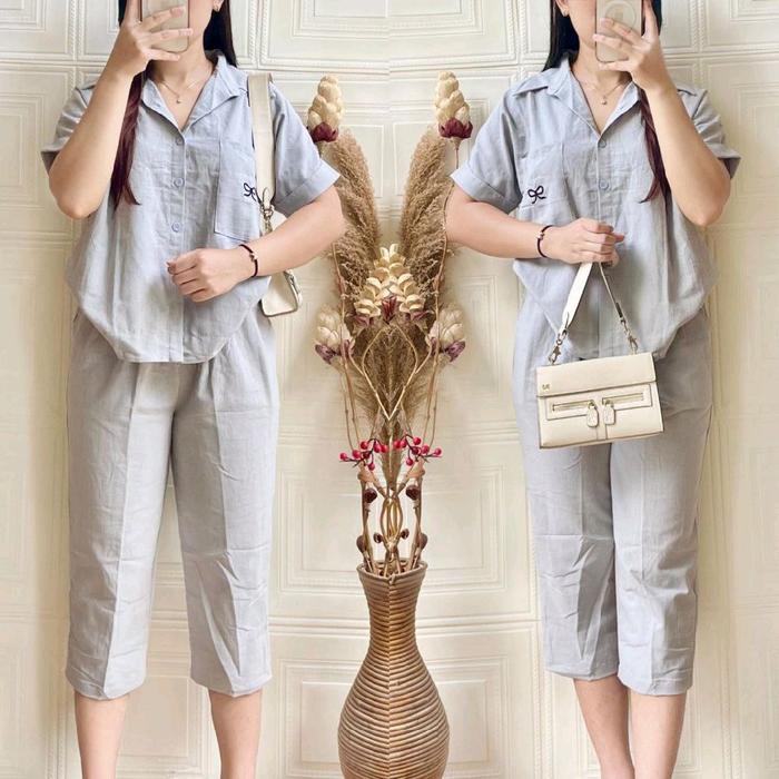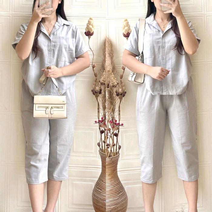 ONE SET ELIZHA PENDEK, 7/8 & PANJANG| SETELAN WANITA CASUAL - GREY 7/8