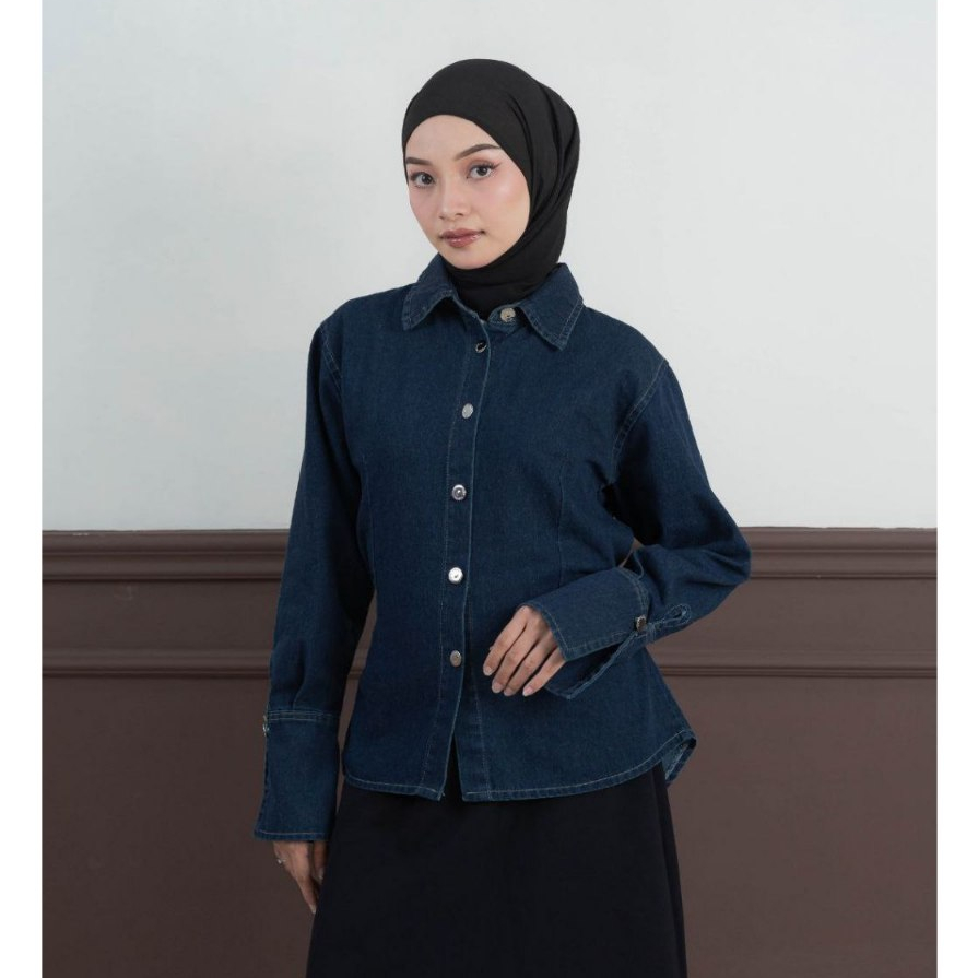 ORVEA Julia Blouse Top Fitted Denim Premium l Blouse Denim Wanita Fit Body Modest Casual Look Murah Gratis Ongkir