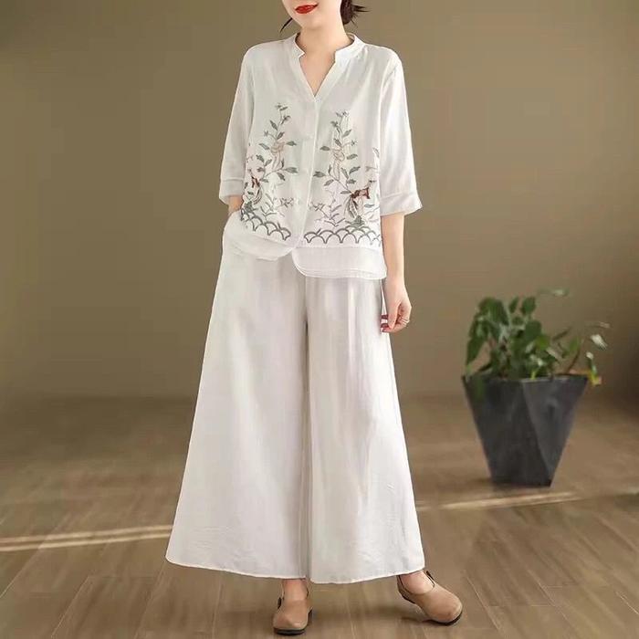 SETELAN WANITA ATASAN BAJU SET CELANA KOREAN STYLE OOTD IRENE ONE SET MATT CATTON LINEN MIX BORDIR PREMIUM ONE SET CASUA