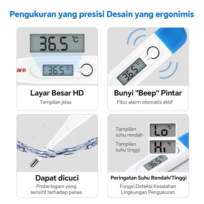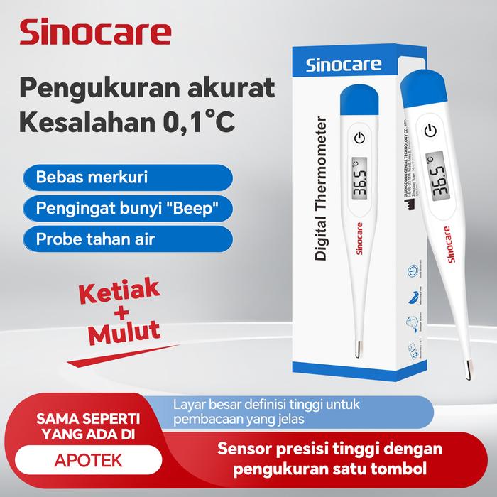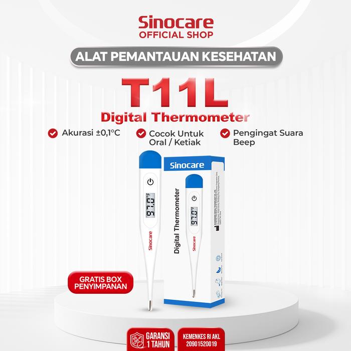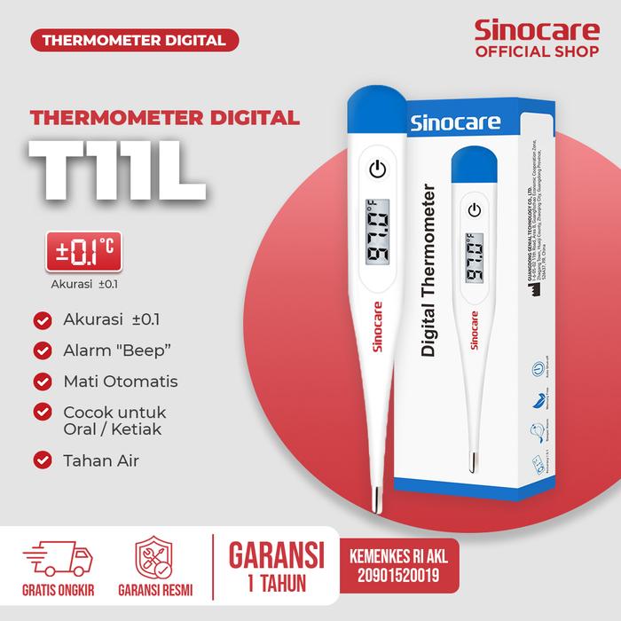 Termometer Digital T11L Sinocare - Akurat ±0.1°C Tahan Air Bebas Merkuri Ujung Lurus Cocok Mulut Ketiak Garansi 1 Tahun