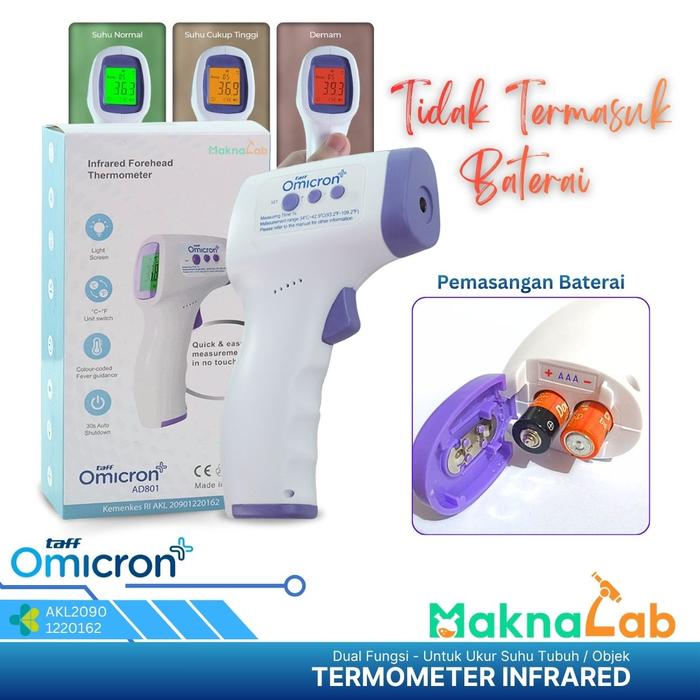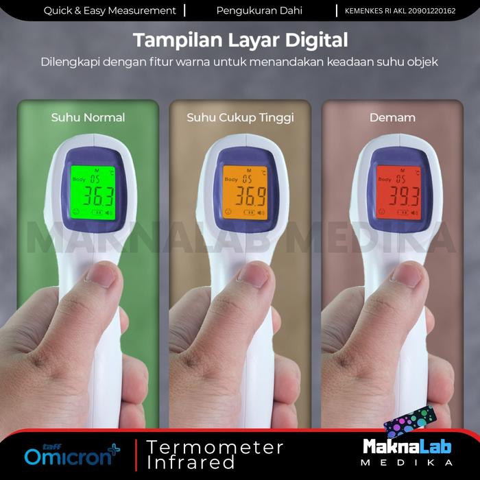 Termometer Digital Infrared Taff Omicron AD 801 untuk Pengukuran Suhu Tubuh yang Akurat Layar Hijau Merah Orange