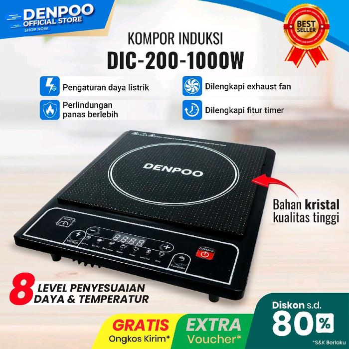 KOMPOR LISTRIK INDUKSI PUSH BUTTON DENPOO LOW WATT DIC 200-1000