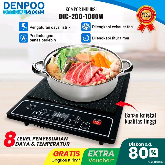 DENPOO KOMPOR LISTRIK INDUKSI PUSH BUTTON LOWWATT DIC 200-1000