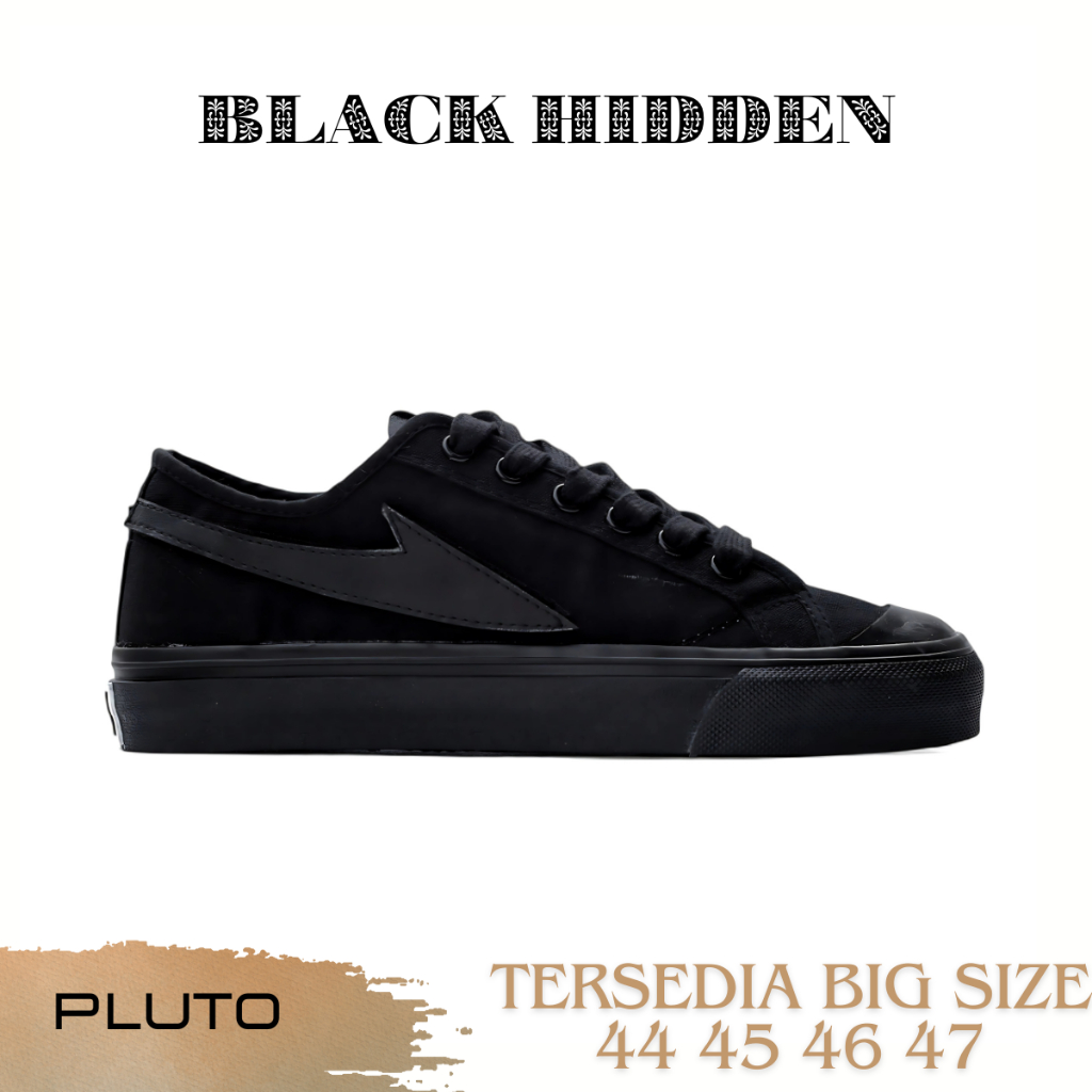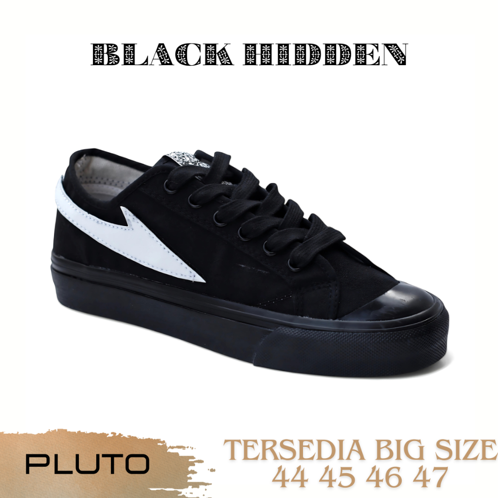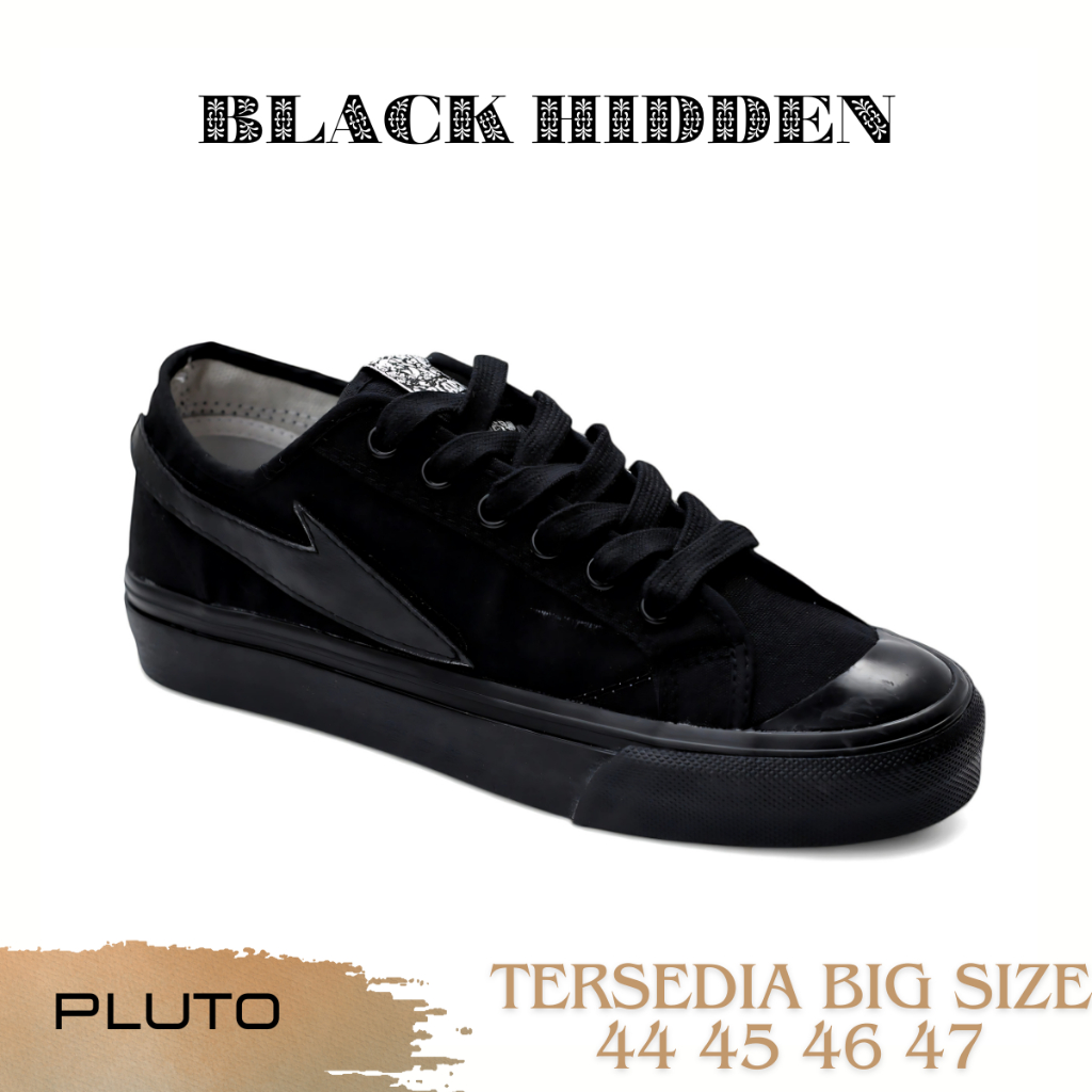 Black Hidden Pluto - Sepatu Casual Sneakers Pria Sepatu Sekolah Kuliah Warna Hitam Size Jumbo