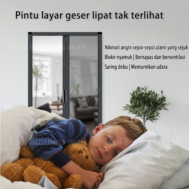 Pintu kawat geser sliding Anti nyamuk Pintu geser Bernapas dengan lubang Anti Tikus lipat Tidak perlu pengeboran Mudah dipasang Ukuran 70