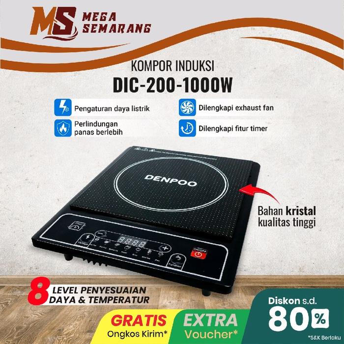 KOMPOR LISTRIK INDUKSI PUSH BUTTON DENPOO LOW WATT DIC 200-1000