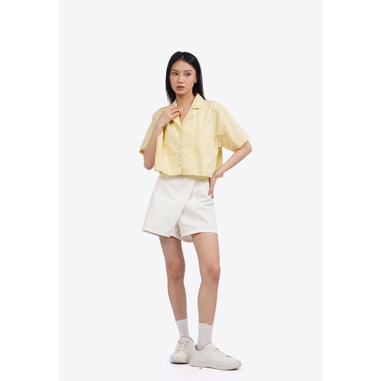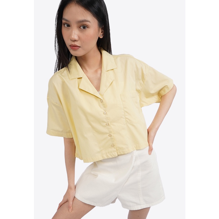 COLORBOX Short Sleeve Notch Collar Crop Blouse Yellow Murah Gratis Ongkir