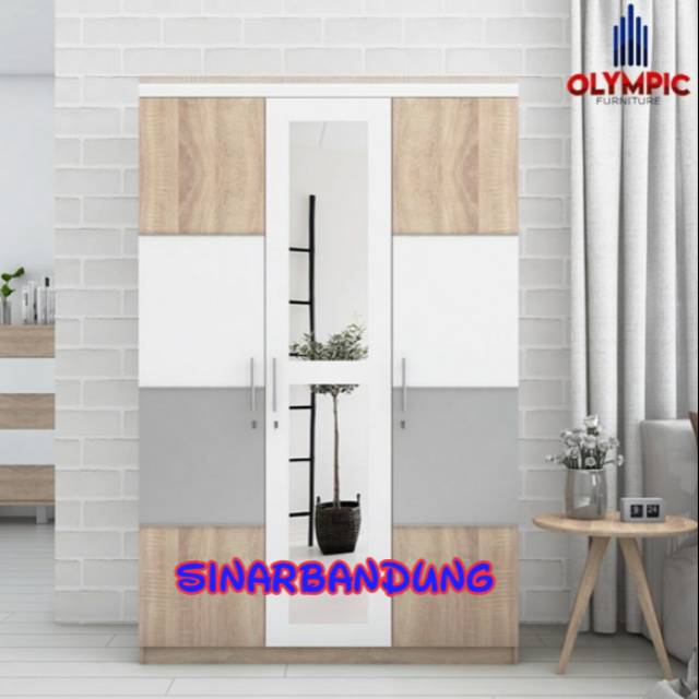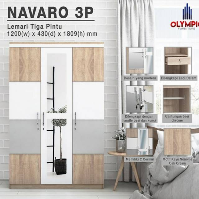 LEMARI PAKAIAN NAVARO OLYMPIC 3 PINTU / LEMARI PAKAIAN KACA MINIMALIS