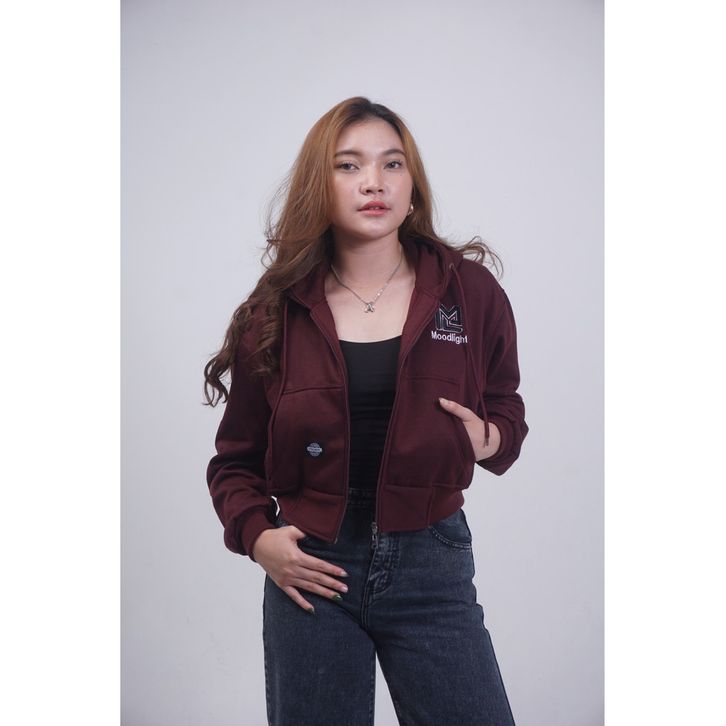 CROPTOP ZIPPER HODIE ORINGINAL BAHAN FLECE TEBEL GRMASI 280